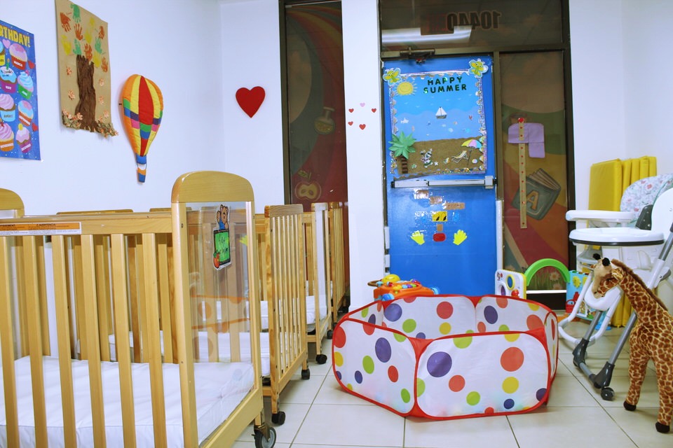 - Daily: Toys, play areas, and nap areas are sprayed with a disinfectant.